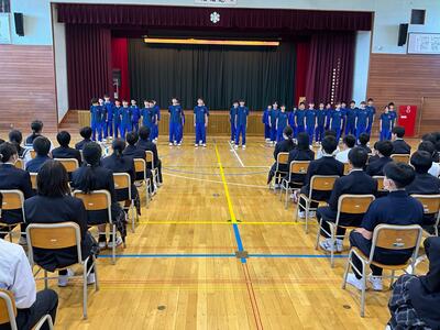壮行会では陸上部の決意表明の後、生徒会役員の生徒たちによる『出しもの』があり、