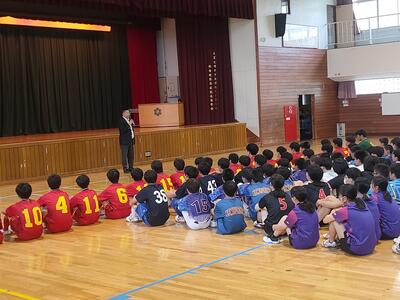 校長からの励ましての言葉では、皆、写真のように「目と耳」でしっかりと話を聞いていました。