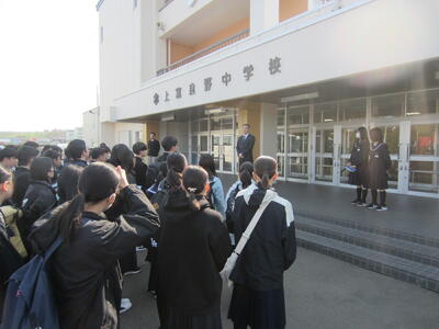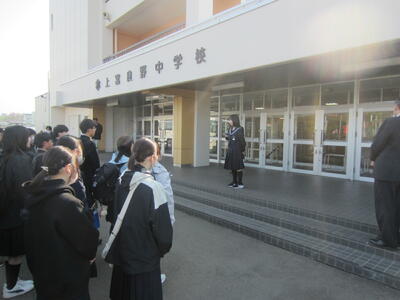 8時前から先生方が生徒たちを出迎えに立ちます。