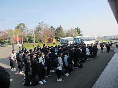 快晴の中、出発式が行われ、生徒代表、校長から挨拶がありました。
