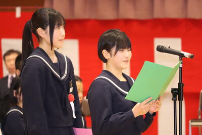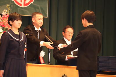 第79回卒業証書授与式 投稿: 教頭 (07:29) 証書授与の呼名から、涙なみだの式となりました。 卒業生代表2名の「旅立ちの言葉」は、在校生、保護者、担任、それぞれへの思いが込められ、語りかけるようなスピーチが涙を誘いました。 卒業生合唱、全校合唱と、合唱コンクールに引けをとらない素晴らしい歌声が、感動と涙をまた誘いました。 まだ肌寒い中でしたが、式後、校門から卒業生たちが堂々と旅立ちました。